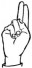 На ћирилици написано МАТЕЈА ДАБИЋ састоји се из 11 слова [?]. Исписано ћириличном једноручном азбуком за глувонеме: